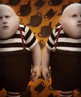 Matt Lucas扮するトゥィードルダムとトゥィードルディー は「鏡の国のアリス」に登場。 マザーグースの部分 「トゥィードルダムとトゥィードルディーが 大喧嘩を始めたわけは トゥィードルディーがトゥィードルダムの おもちゃをこわしたからだといいます そこへ酒樽のようにまるまる太った 大きなカラスがやってきました 二人はそれこそびっくり仰天 喧嘩などしてる場合じゃありません」